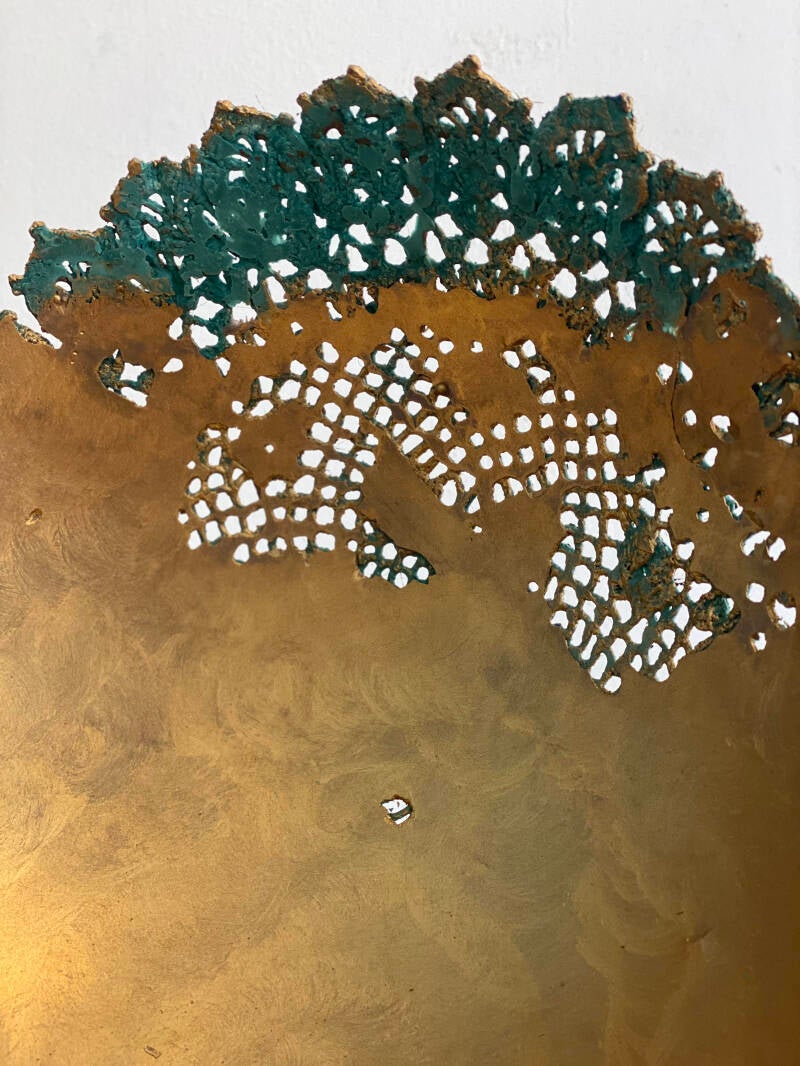 Acrylaathars - glasvezel - metaal- pigmenten - pootjes van apoxy - moerbeiboomschors
